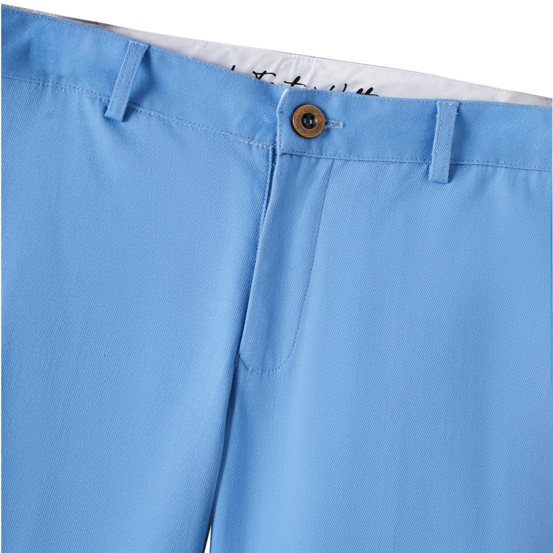Photo portée tenues de cérémonie enfant avec le pantalon chino bleu ciel Ambroise, gilet de costume assorti et robes blanches et dorées en tulle pour filles Photo packshot de l'avant du pantalon de costume été bleu ciel garçon coupe chino Ambroise de la marque de mode pour enfant Française La Faute à Voltaire.