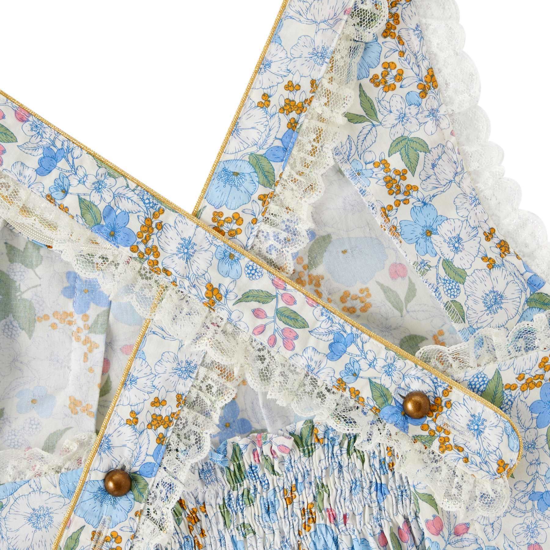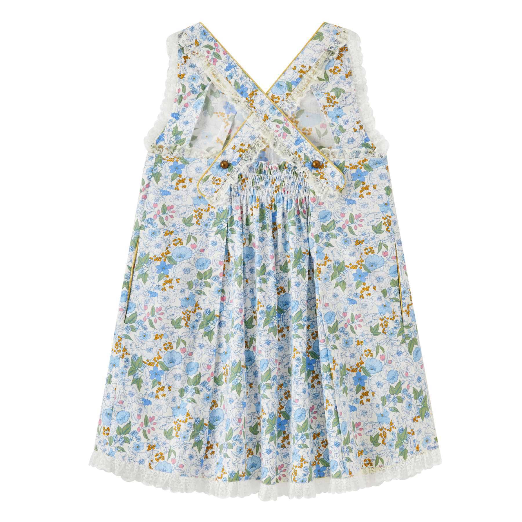 De coupe A, ample et confortable avec son dos smocks et ses bretelles à longueur ajustable, a robe de cérémonie fille liberty bleu clair Anaïs convient aux petites filles comme aux adolescentes.