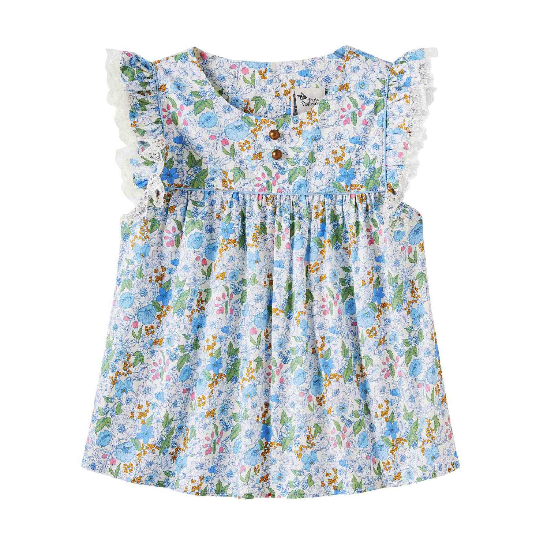Légère et raffinée, la blouse liberty fille bleu ciel séduit par son imprimé fleuri délicat et ses finitions soignées. Une pièce idéale pour composer une tenue estivale élégante, confortable et pleine de douceur.